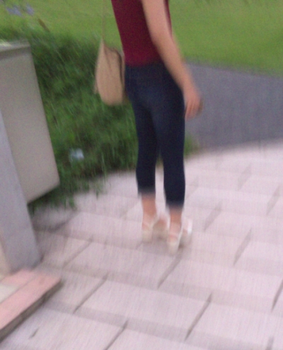 パンティを履いていましたが、敢えてそのまま・・で、フロントTにしてマンコへ食い込ませます。