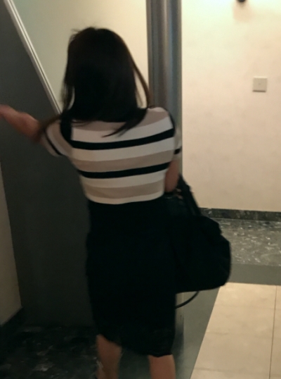 この間と違って、この日はカジュアル系の服装で登場した彼女でしたが、胸のラインがはっきり浮き上がってるシャツでした。